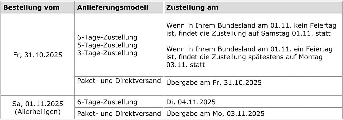 Belieferungsinformationen Allerheiligen 2025